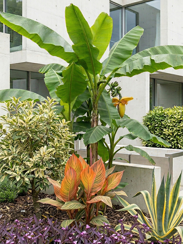 バナナ特有のオーナメンタルな花序も咲かせます。